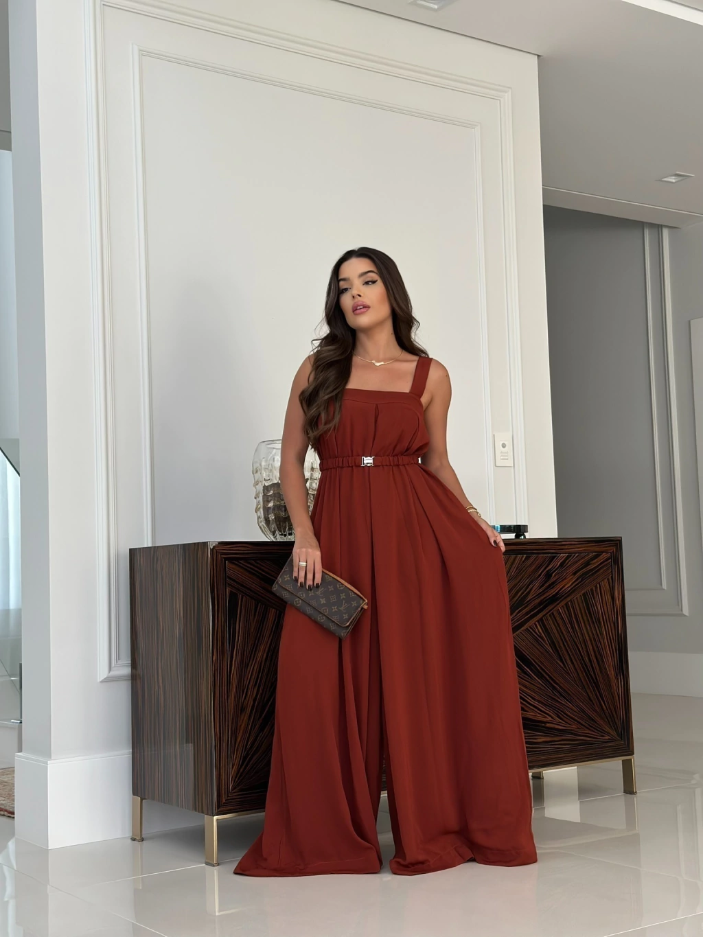 O macacão Veneza é uma peça única e sofisticada, confeccionada em um tom elegante de marrom que exala modernidade e elegância. Com um design impecável, ele apresenta linhas limpas e um caimento que valoriza a silhueta. Acompanha um cinto com fivela em prata, que adiciona um toque de brilho discreto e permite ajustar o visual ao seu estilo. Ideal para quem busca praticidade sem abrir mão da sofisticação, o macacão Veneza é perfeito para eventos sociais ou um dia de trabalho cheio de estilo.